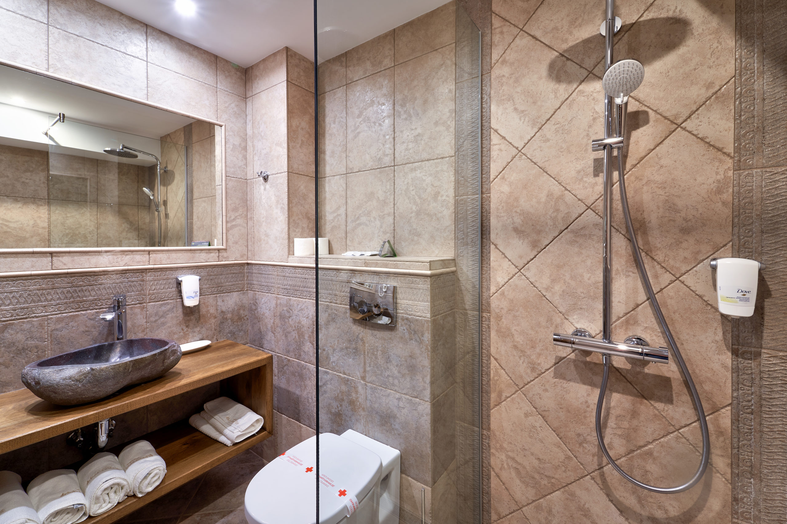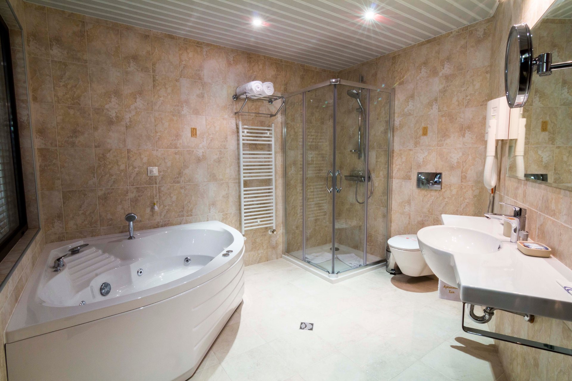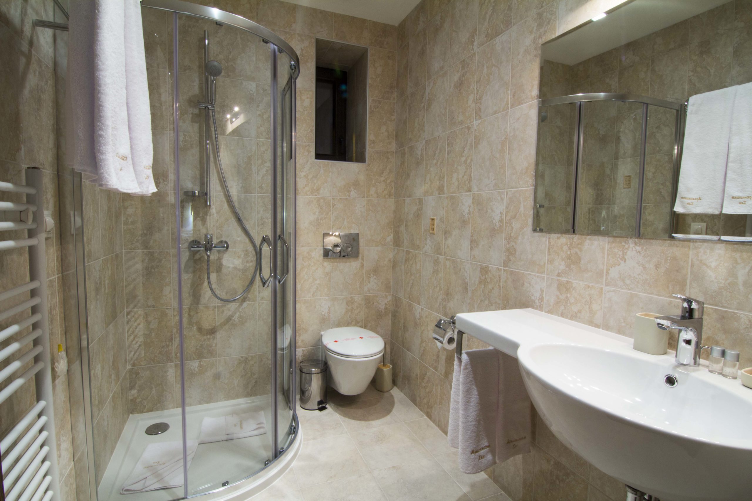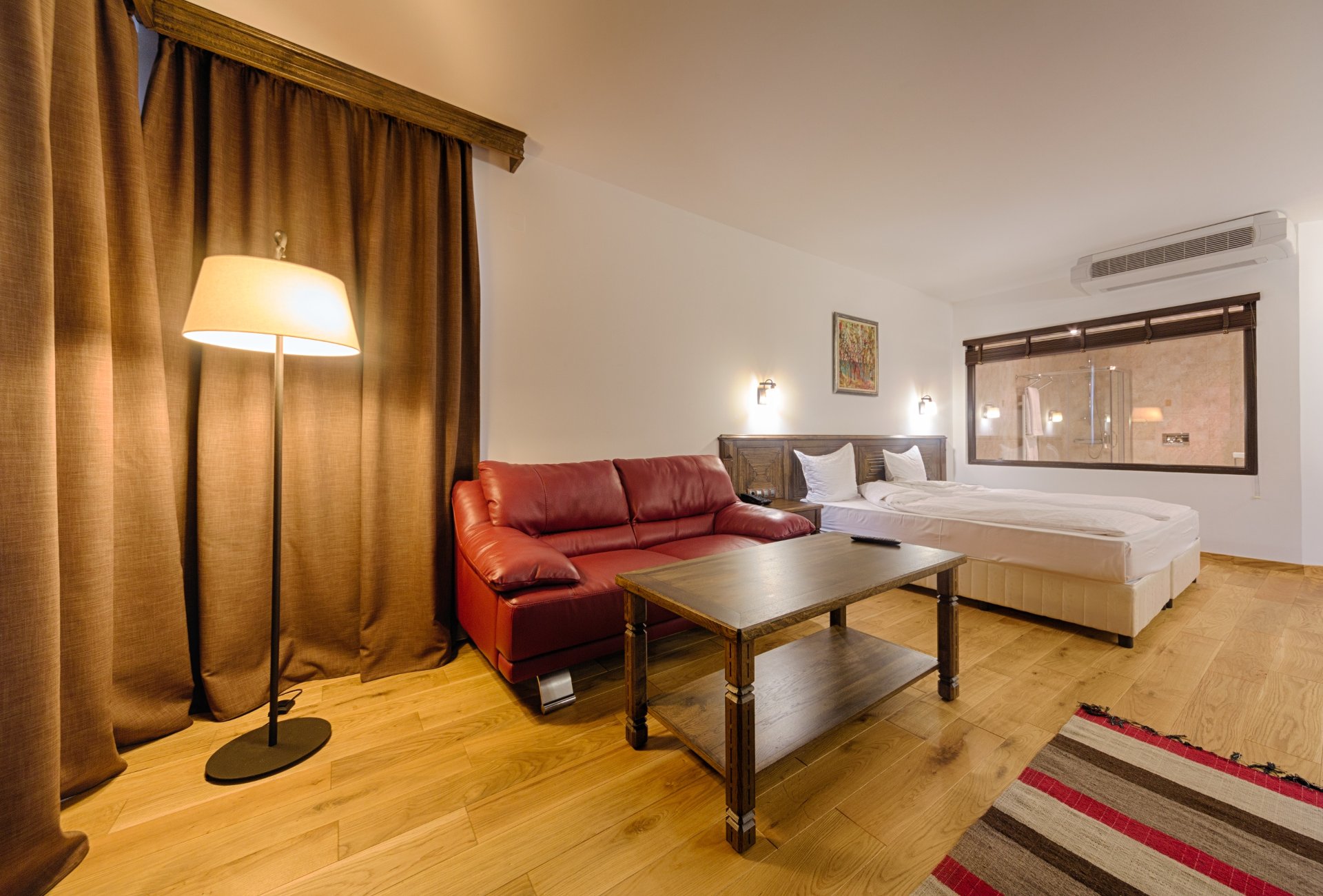 - Amenities: air-conditioning, bathrobe, desk, free wi-fi, hairdryer, in-room safe, local heating, parquet, refrigerator, telephone for internal calls, toiletries, towels, wardrobe