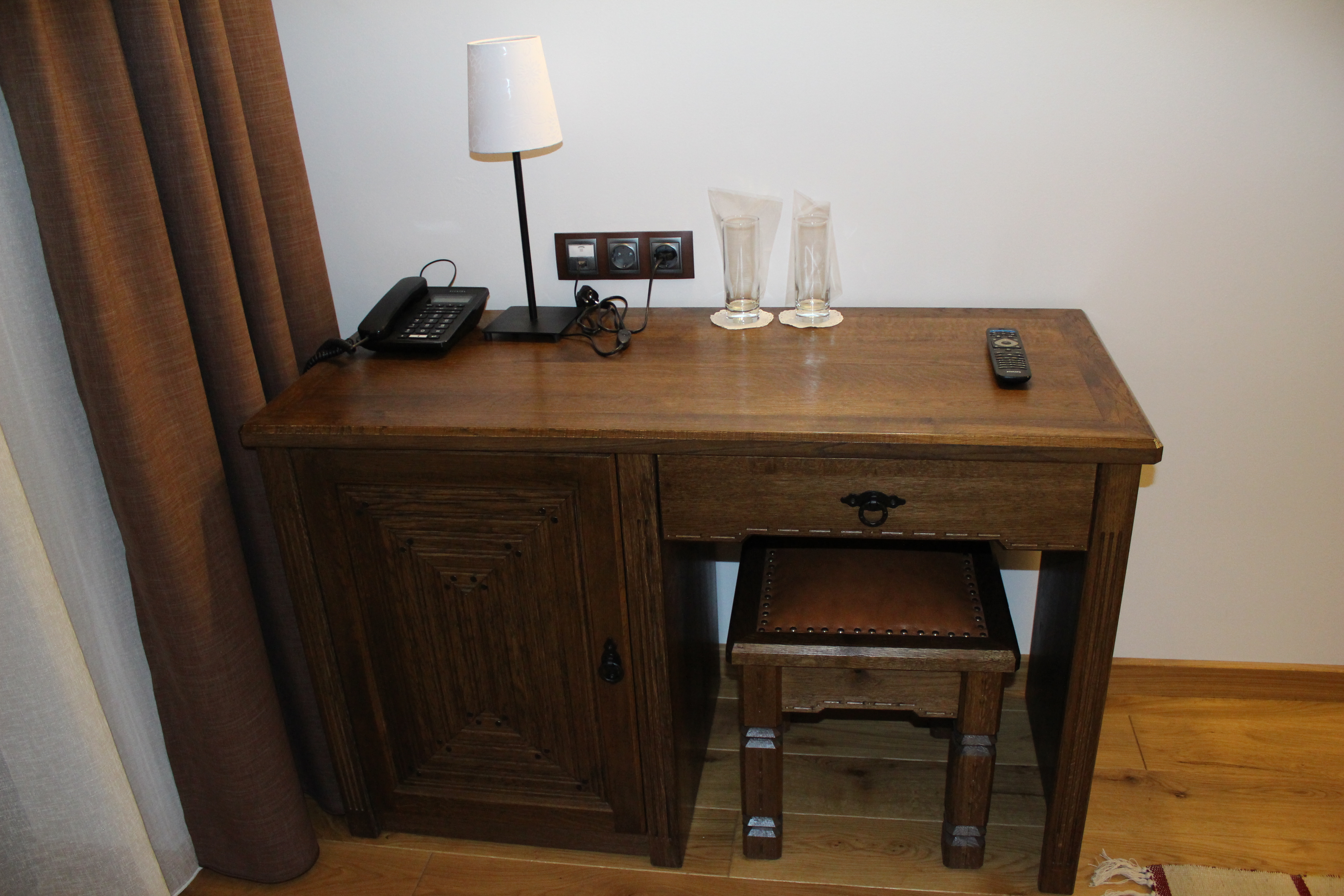 - Amenities: desk, free wi-fi, in-room safe, local heating, parquet, toiletries, towels, wardrobe