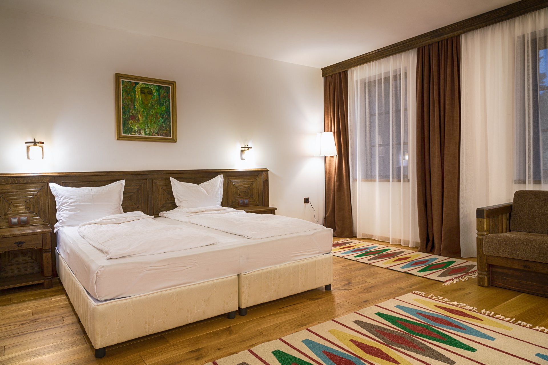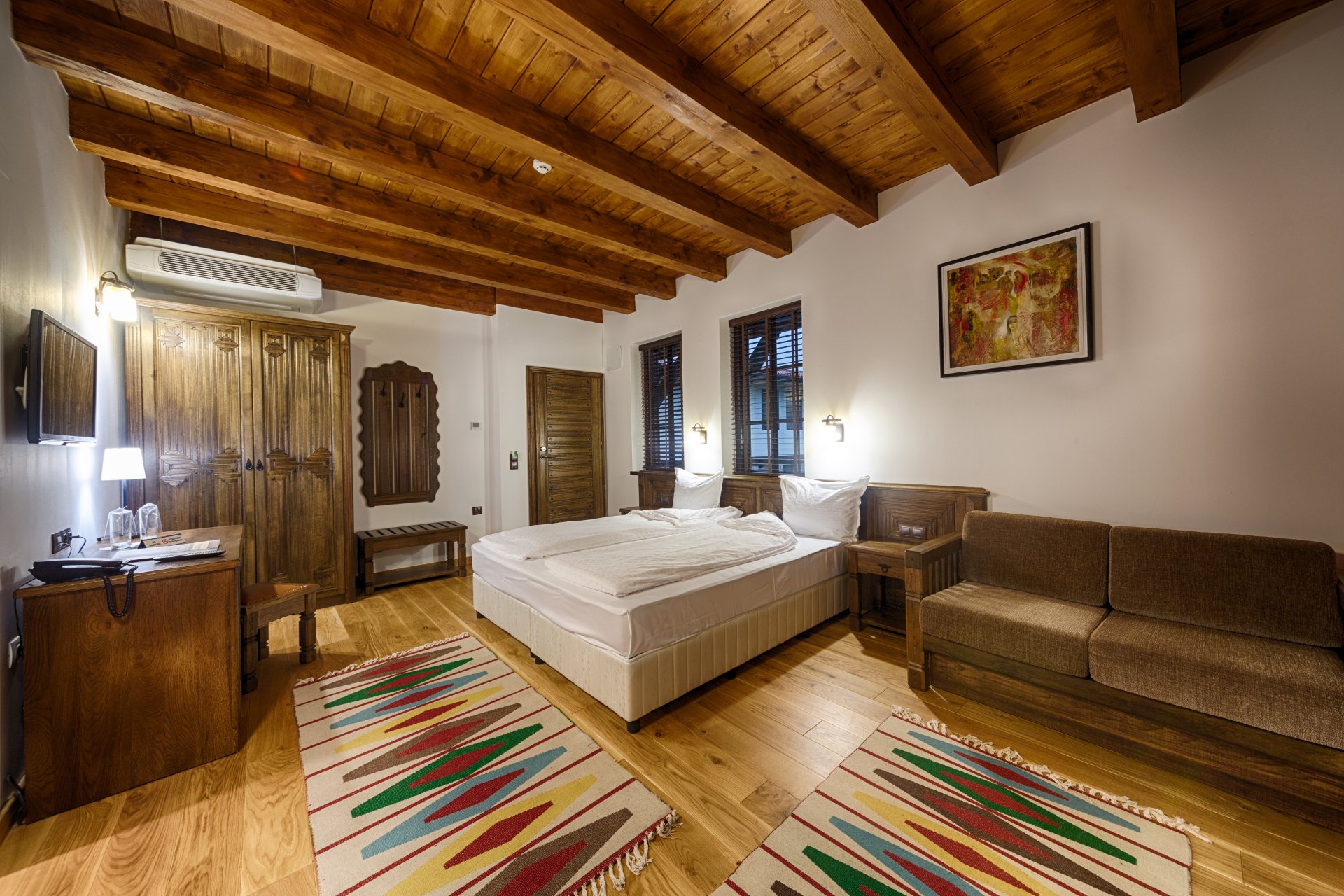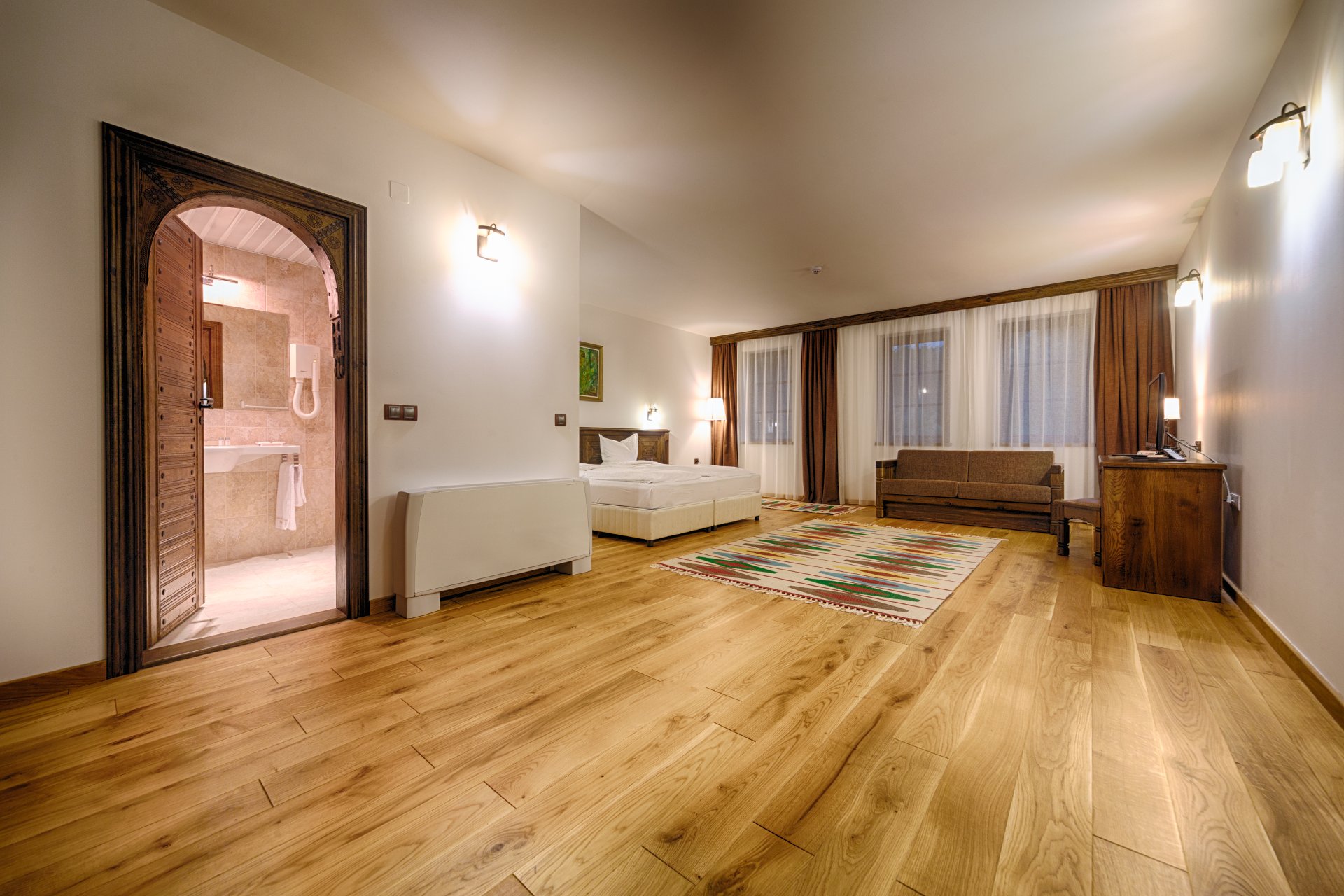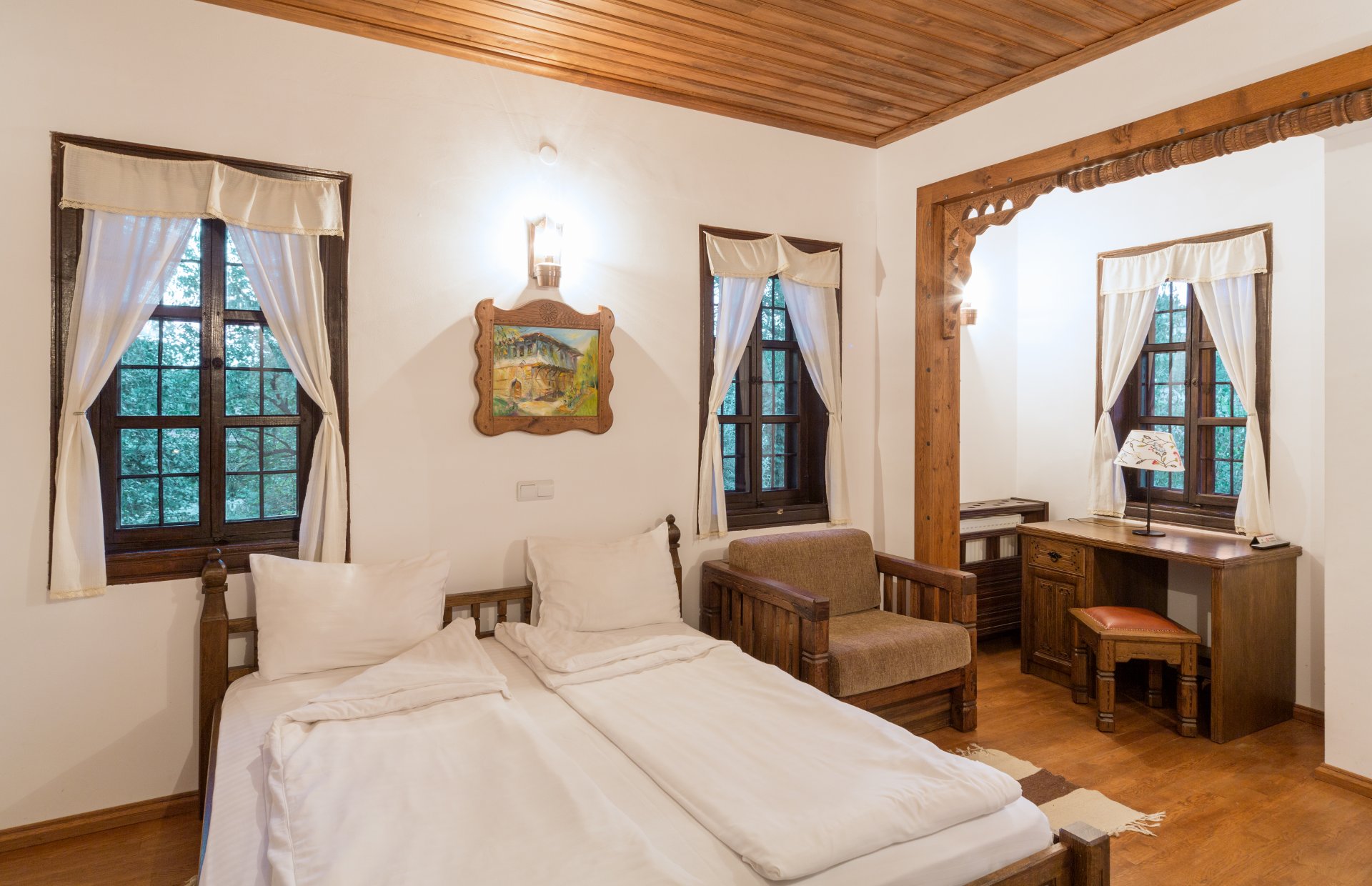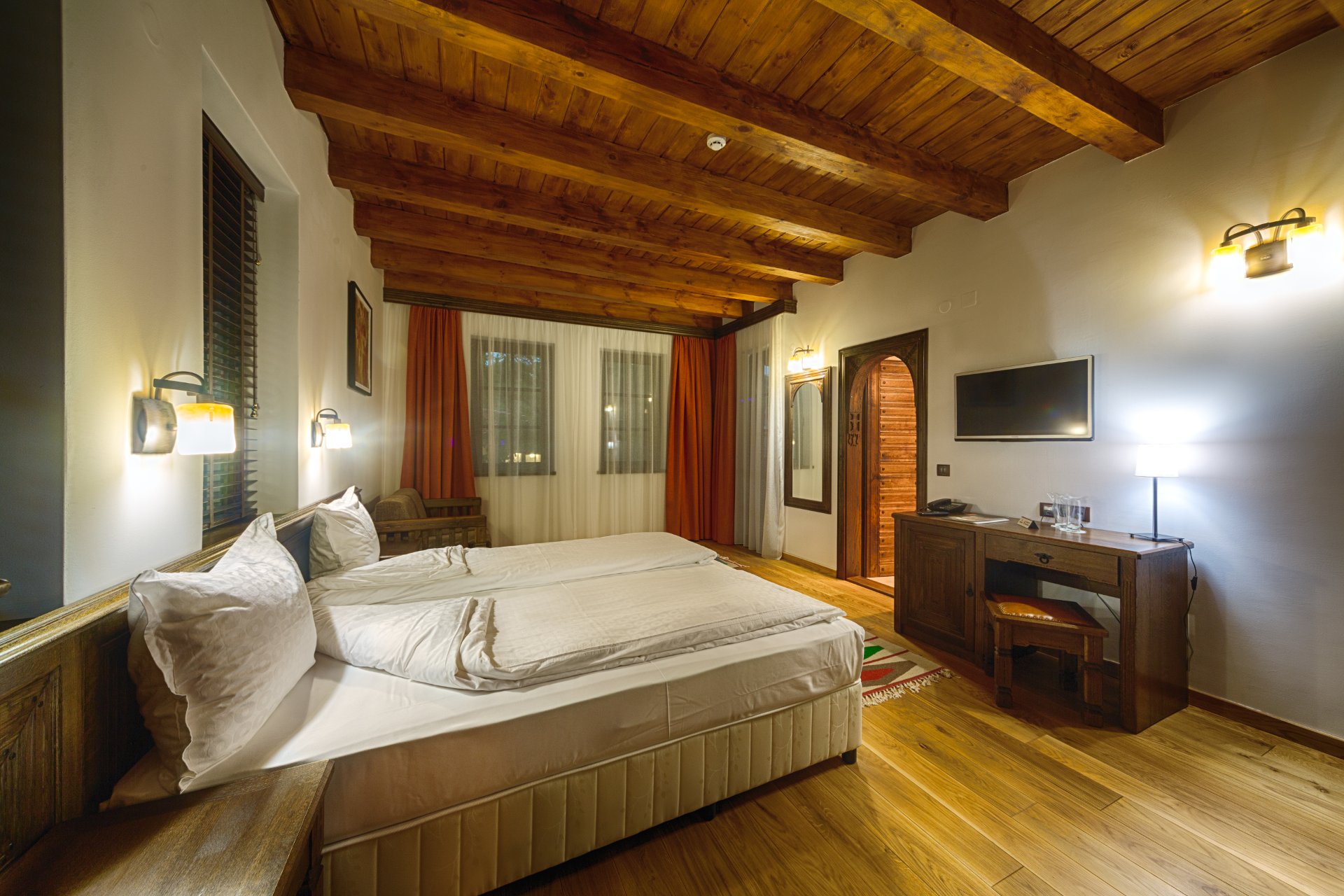 Hajihristov’s House is a cultural monument of national importance. The specification of its centuries-old history does not offer the comforts and luxuries characteristic of all other rooms in our complex. Built in 1646, the iconic house lacks air conditioning, a refrigerator and curtains, but does have a flat-screen TV with DTV. The double room has … Continue reading “Double room”